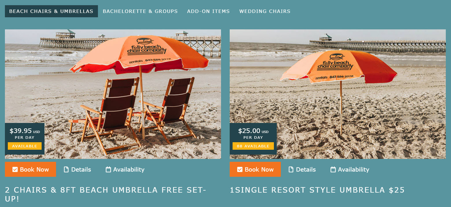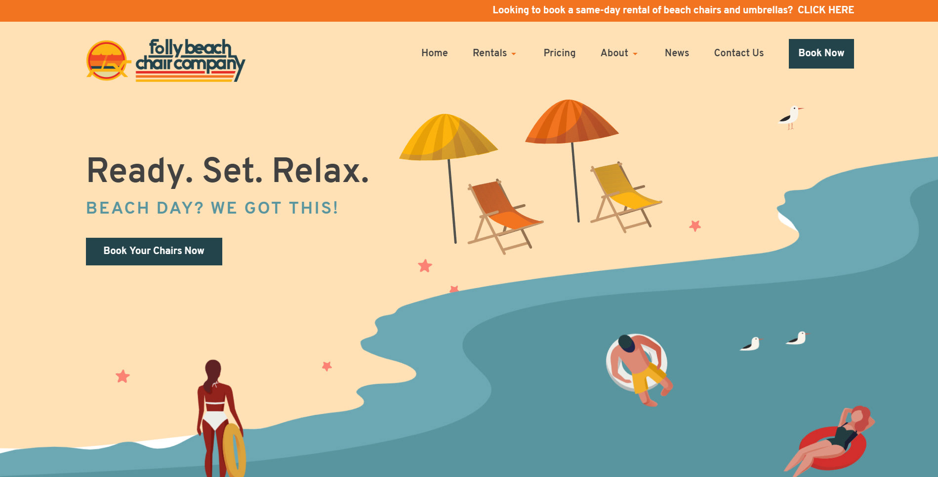 A fun and visually appealing WordPress website integrated with the Checkfront booking platform to provide beach chair, umbrella, and other equipment rentals online.