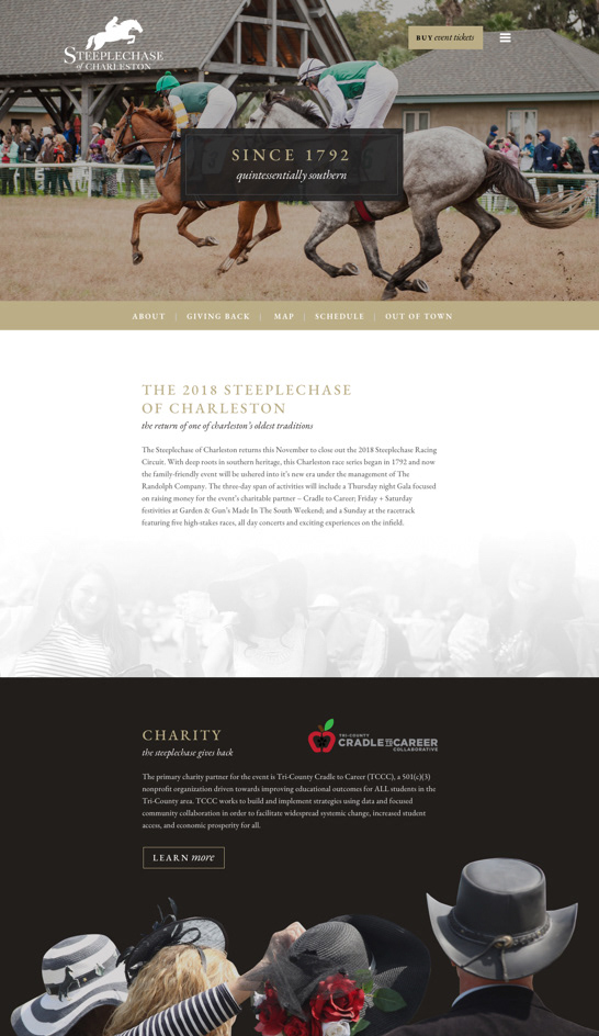 A custom WordPress event website that sets the tone for the quintessentially southern event of the year: The Steeplechase of Charleston.